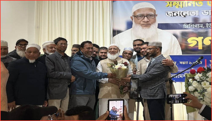 হ্যামট্রাম্যাক, ২৬ অক্টোবর : পবিত্র ওমরাহ পালন শেষে যুক্তরাষ্ট্রের মিশিগানে সফরে আসা জামায়াত ইসলামের আমির ডাঃ শফিকুর রহমান কে সংবর্ধনা দেয়া হয়েছে। গতকাল ২৫ নভেম্বর শনিবার স্থানীয় সময় সন্ধ্যায় হ্যামট্রাম্যাক শহরের গেইটস অফ কলম্বাসের একটি হলরুমে এই গণ সংবর্ধনার আয়োজন করা হয়। অনুষ্টানে অতিথিকে ফুল দিয়ে শুভেচ্ছা জানানো হয়। ডাক্তার মোতাহের হোসেন এর সভাপতিত্বে ও মাওলানা সুহেল আহমেদ এর পরিচালানায় অনুষ্ঠানটি শুরু হয়।