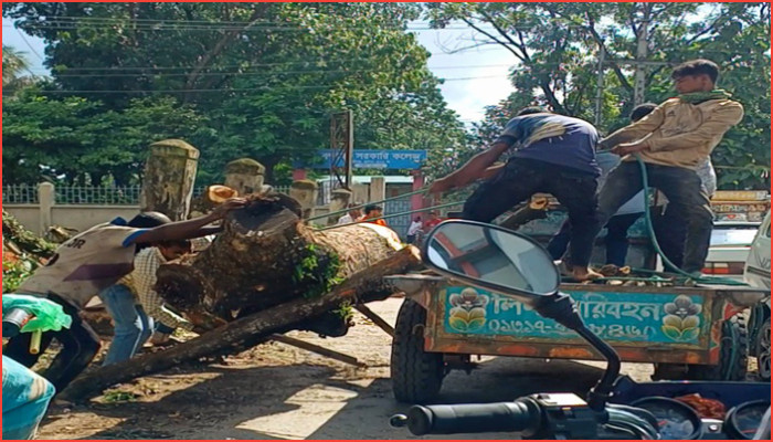 হবিগঞ্জ, ২৪ আগস্ট : হবিগঞ্জ জেলা পরিষদ অডিটোরিয়ামের শতবর্ষী গাছগুলো এখন অতীত। টলি বোঝাই করে নিয়ে যাওয়া হচ্ছে সবুজের স্মৃতি। কয়েক মাস আগে পরিবেশকর্মী ও সচেতন নাগরিকদের সোচ্চার প্রতিবাদে সাময়িকভাবে থেমেছিল এই গাছ কাটা। প্রশ্ন হলো, তখনকার সেই ‘বন্ধ’ কি জনগণকে শান্ত করার নাটক ছিল? আর এখন কার নির্দেশে চুপিসারে শেষ করা হলো সব?