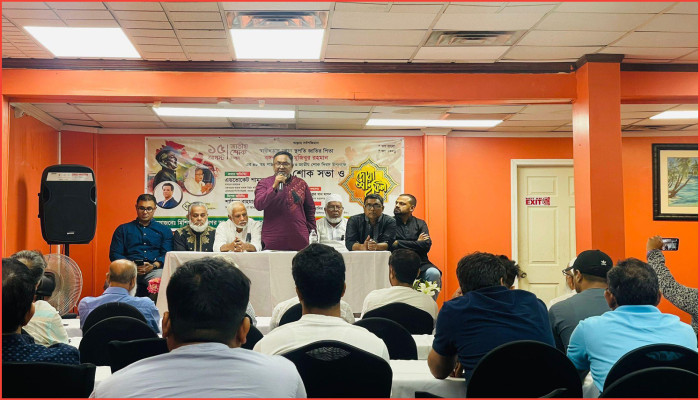 হ্যামট্রাম্যাক, ২২ আগস্ট : জাতীয় শোক দিবস উপলক্ষে মিশিগান মহানগর আওয়ামীলীগের উদ্যোগেগে শোক সভা ও দোয়া মাহফিল অনুষ্ঠিত হয়েছে। রবিবার (২০ আগস্ট) সন্ধ্যায় শহরের নিউ মদিনা রেস্টুরেন্টে মিশিগান মহানগর আওয়ামীলীগের সভাপতি আব্দুস শাকুর খান মাখনের সভাপতিত্বে ও সাধারন সম্পাদক মোহাম্মদ মুতালিবের পরিচালনায় প্রধান অতিথি হিসেবে উপস্থিত ছিলেন একাত্তরের ঘাতক দালাল নির্মুল কমিটির সিলেট জেলা শাখার সাধারণ সম্পাদক, সিলেট ল’কলেজ ছাত্র সংসদের সাবেক ভিপি, এডিশনাল পিপি এডভোকেট সামসুল ইসলাম। বিশেষ অতিথি হিসেবে বক্তব্য রাখেন সিলেট জেলা আওয়ামীলীগের কার্যকরী সদস্য সাবেক ছাত্রনেতা শাহিদুর রহমান চৌধুরী জাবেদ। দোয়া পরিচালনা করেন মিশিগান মহানগর আওয়ামীলীগের উপদেষ্টা হারুন আহমদ।